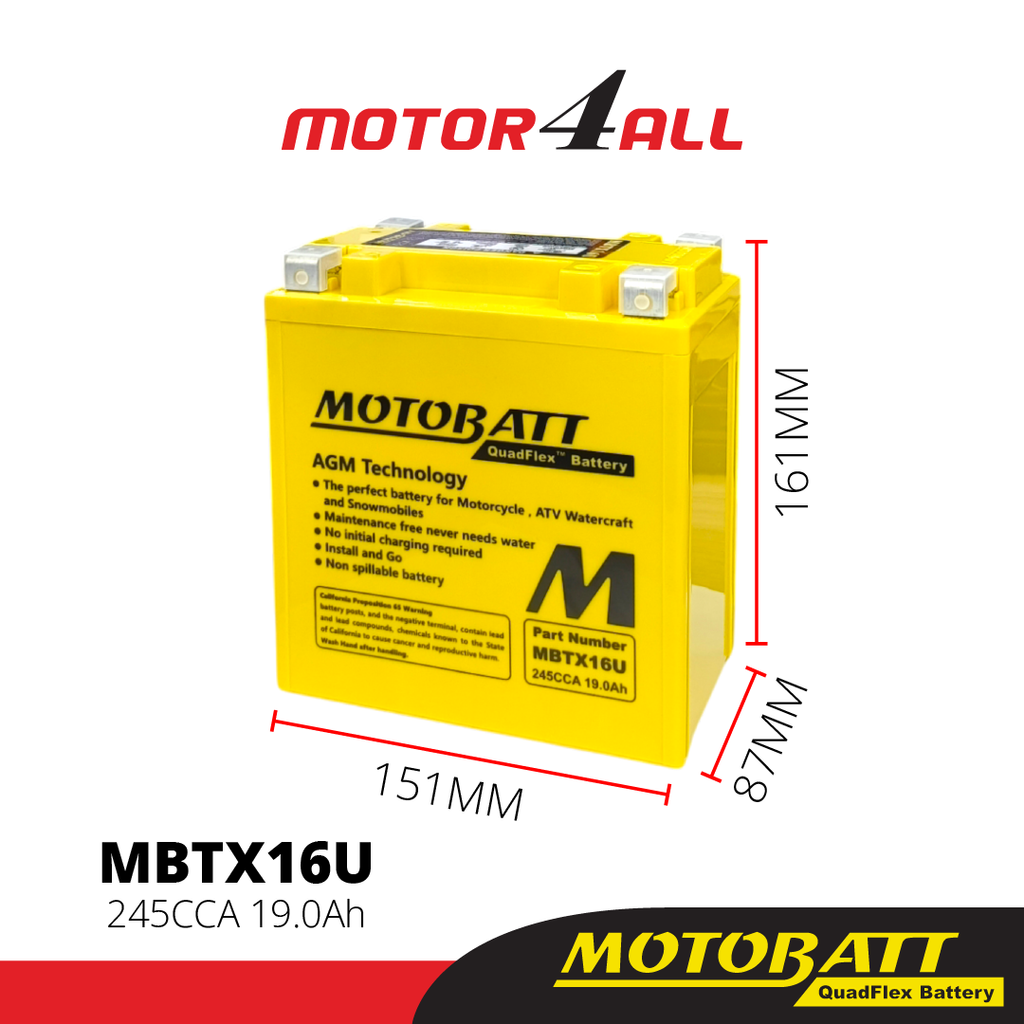 MOTOBATT Quadflex MBTX16U Bateri Motosikal Premium Pengganti Yuasa dengan Teknologi AGM – Motor4all